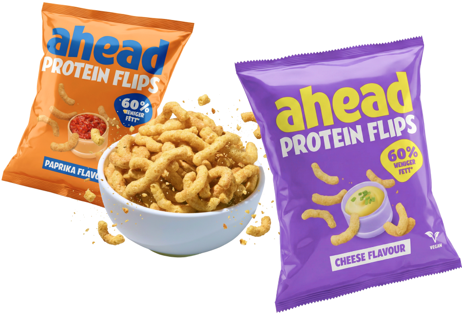 Ein Blick in die Snack-Regale zeigt: Herkömmliche Flips bestehen meist aus Mais oder Kartoffeln, sind frittiert und bringen viele gesättigte Fettsäuren und einfache Kohlenhydrate mit sich. ahead Protein Flips gehen einen anderen Weg:
