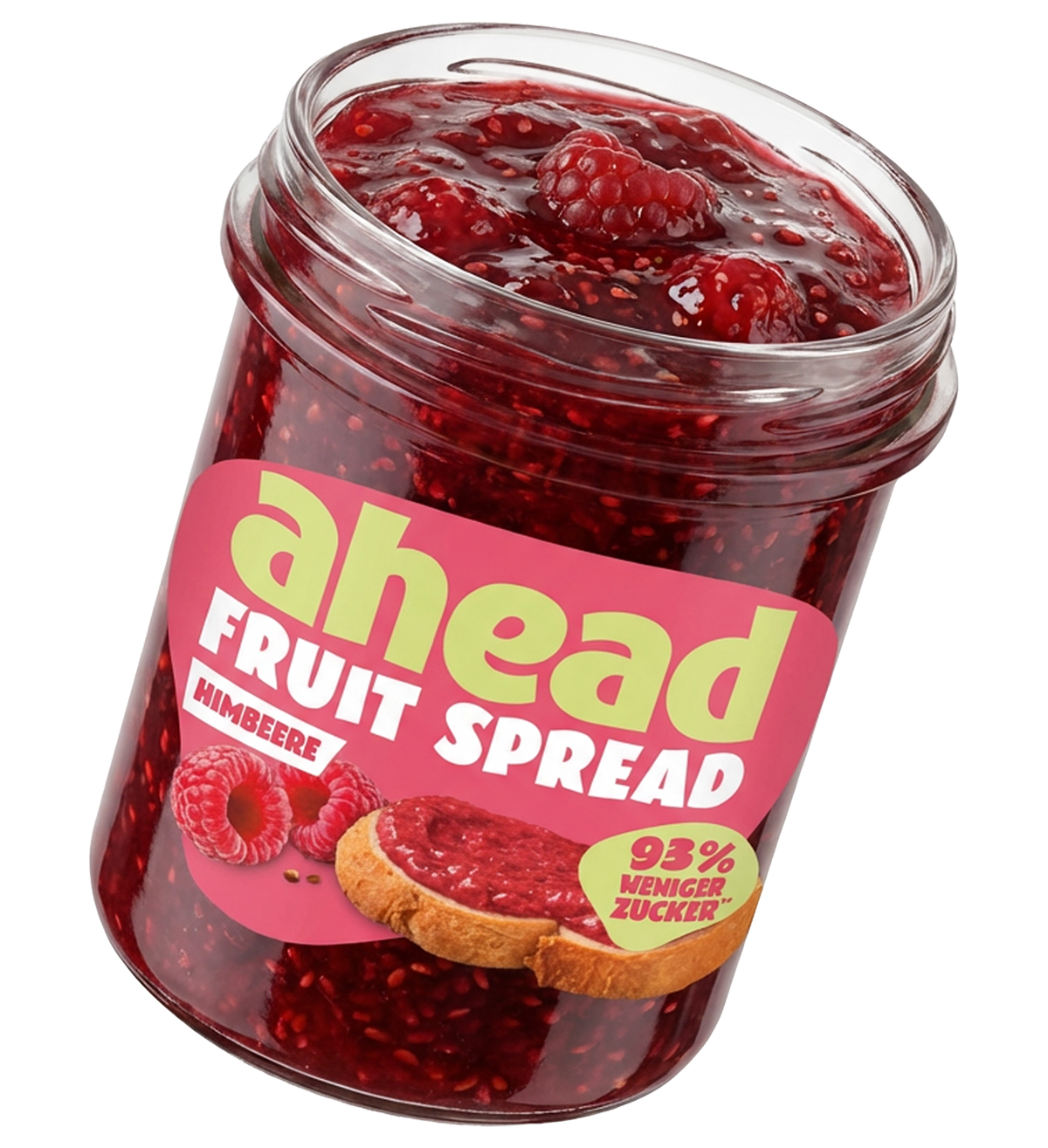 Lust auf Himbeer-Marmelade, aber ohne Zuckerüberschuss? Der ahead Fruchtaufstrich liefert dir genau diesen intensiven Genuss. Mit 93 % weniger Zucker¹ bleibt hier nur der fruchtig-süße Geschmack der Beeren. Dieser Aufstrich ist nicht nur lecker, sondern auch eine Ballaststoffquelle. Perfekt für alle, die bewusst genießen wollen, ohne auf die süßen Freuden zu verzichten. Ob auf Brot, im Müsli oder als Fruchtschicht im Dessert – dieser Fruit Spread sorgt immer für den richtigen Fruchtkick.